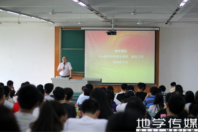 2016届本科毕业生读研及就业工作再动员大会在我校犀浦校区4359教室如期举行。参加本次大会并担任主讲老师的是我院副院长齐华教授和党委副书记傅尤刚老师,参会的还有辅导员王静雅老师,我院所有2016届的准毕业生参加了本次大会。