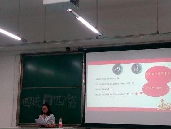 学习会分为三部分:回顾,思辨,展望。回顾环节中团支书以ppt讲演为同学们详细介绍了“四进四信”的背景、含义等内容,并将主题引入大学生入党的意义;思辨环节中交运拉斯维加斯娱乐城