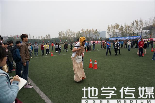 的选手面带笑容,一路蹦跳,在和队友换衣服环节由于动作不是特别娴熟而稍显落后。到女生的时候,由于女生身材娇小,袋鼠服便显得大而笨重,跳起来稍显困难。尽管如此,地学的选手们也没有放弃,一直坚持到了最后,脸上始终带着欢乐的笑容。最后,我院运动员们取得了小组第三的成绩。