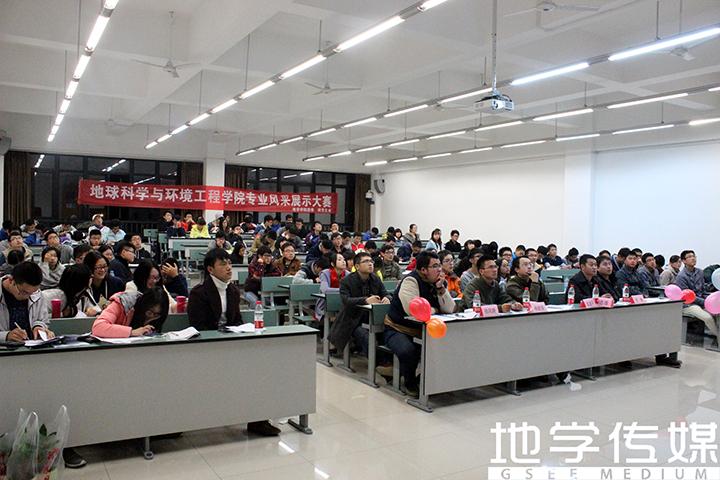 布置精美的会场座无虚席,主持人的简单赛事介绍之后,专业风采展示正式开始。按照地质组、测绘(含遥感)组和环境(含消防)组的出场顺序,共计8个小组参加了专业风采展示大赛,每组历时约8分钟。地质一组的展示先声夺人,地质二组的内容详实充分,测绘一组的图片幽默风趣,测绘二组的视频让人热血沸腾,测绘三组配有现场板书示意,环境(含消防)3个组也各有特色,或采用图文并茂的聊天式,或配以轻松悦耳的背景音乐,抑或滔滔不绝的精彩讲解富与提问式互动。各小组分别借助ppt、prezi、iebook的形式展示,并辅以视频、动画,丰富多样;展示的内容围绕本专业学科特点、专业在西南交大的现状和发展以及专业的就业情况等方面展开,侧重凸显地球科学与环境工程拉斯维加斯娱乐城
