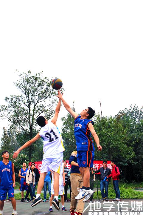 研究生学生会主办的面向全院研究新生的14级篮球友谊赛于2014年10月28号中午12:30拉开了帷幕。南区篮球场上,分在一组的博士班与测绘一班正在进行精彩的比赛。