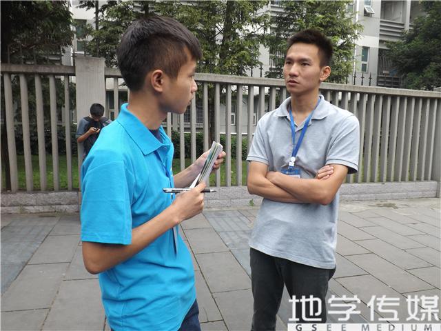 新生接待处,迎新工作如火如荼地展开,到处都能够看到各大学生组织的值班人员忙碌的身影,辅导员、迎新志愿者、党员服务队员们都各司其职,协力开展各项工作。为了传递正能量、全面报道新生入学指导工作,笔者对新生辅导员杨都强老师进行了专访。