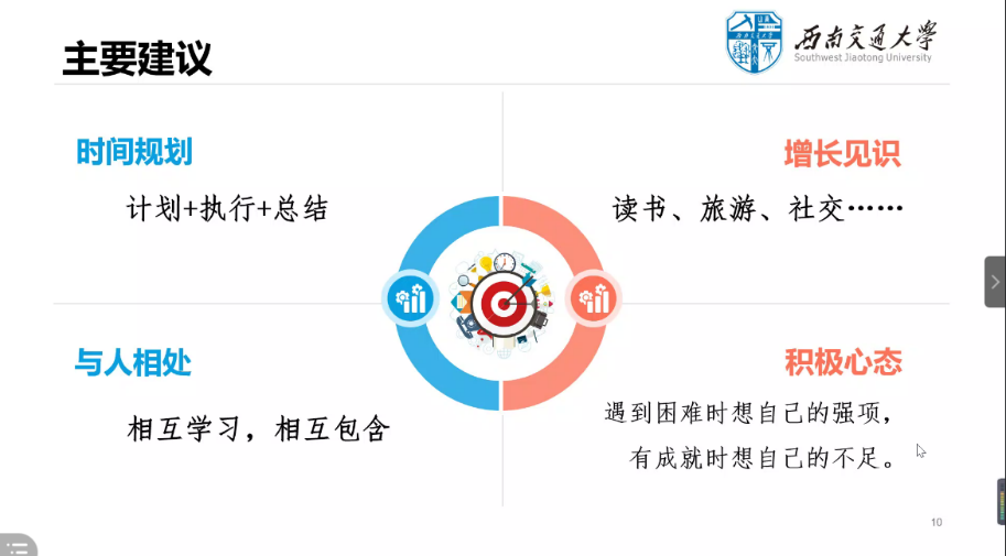 首先国奖获得者肖玥玥同学分享了自己的大学生活经历和感悟,从自己大学学习生活以及获奖经验在如何高效规划时间,如何自我学习,如何大学学习英语,如何增加自己的个人眼界和能力等方面给出了自己的建议。