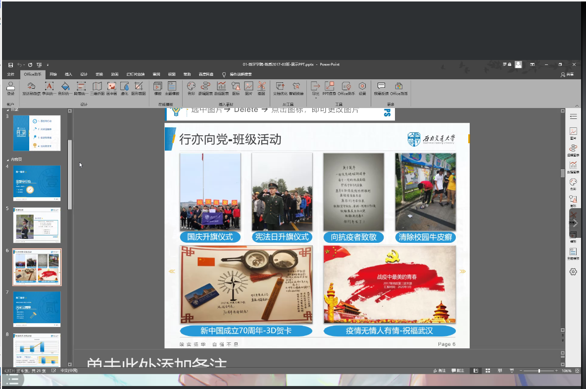接下来是“忠忱班集体”获得班级18级地质3班的班长罗鑫同学的分享。罗鑫同学从班级活动、班级成绩、数据记录、科创实践等方面详细地讲解了如何提升班级的竞争力。强调了班级得有自己的特色,要提升班级的凝聚力。学长还热心地留下了自己的联系方式,方便解答学弟学妹们的提问。