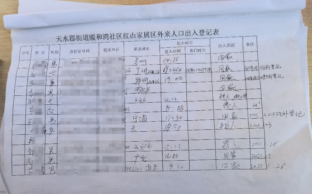 社区的工作人员给我分配的主要工作任务是在小区门口作为抗疫社区志愿者进行对本小区外来人员的登记与体温测量。