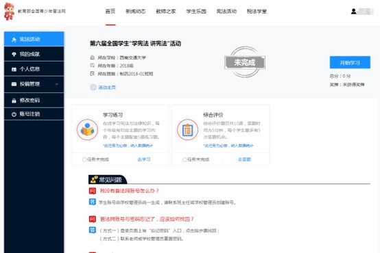 “宪法卫士”2023年行动计划】。学生按照相关要求完成在线学习、课后练习、成果检测等任务后,可获得思想政治与道德素养类1学时。