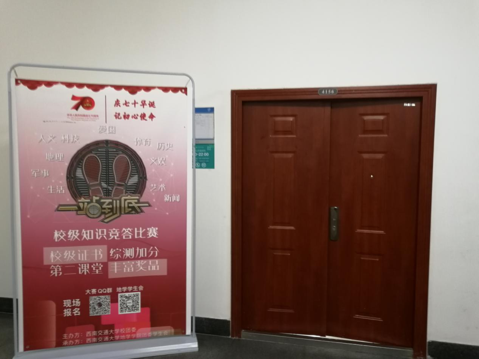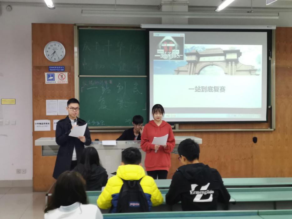 由西南交通大学校团委主办,地学学生会承办的“庆七十华诞,忆初心使命”新生文化节—“一站到底”知识竞赛复赛在10月25日19:00于犀浦校区X4155、X4156圆满结束。
