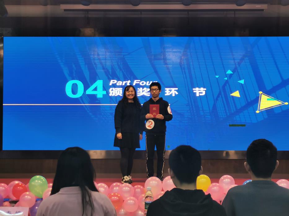 最后就是本次比赛的颁奖环节,在此次知识竞赛中,获得优秀奖的分别是李一珉、王麒淋、张睿聪、危爽、易灵敏,由地学学生会副主席黄镜和潘越颁奖,获得三等奖的是李宇,由校学生会副主席,获得二等奖的是古定翱,由李国欣老师颁奖,获得一等奖的是刘俊,由李婧老师为其颁奖。