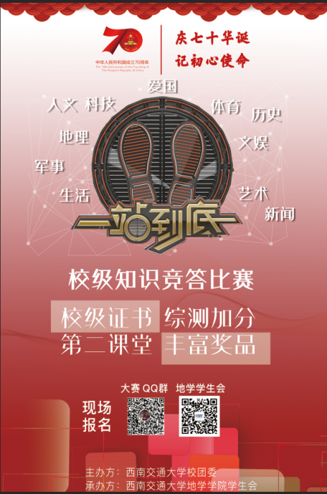 第六届“一站到底”—知识竞赛初赛将在10月19日和20日在线上答题,届时将产生20名选手进入复赛,期待同学们的参加与各位领导、教师们莅临。