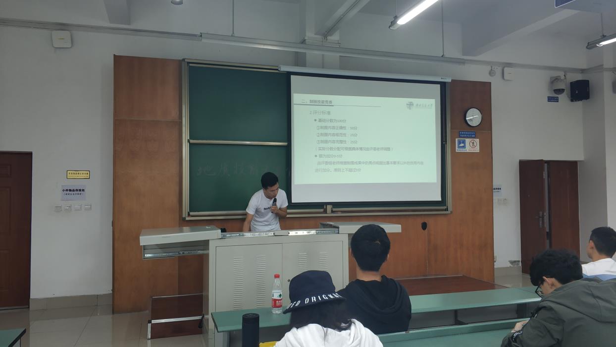 宣讲会主要分为四个场次,测绘技能竞赛、环境保护降噪设计大赛、地质技能大赛、火灾隐患评估及解决方案设计大赛。每个场次都吸引了来自大一到大四各个专业的同学。每个宣讲会的负责人都对本次比赛进行了详细的讲解,对同学们的问题做出了细致的解答。