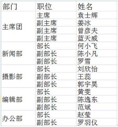 传媒中心2015-2016届主席团及部长,试用期从即日起至2015年8月30日止。