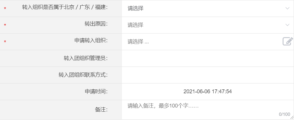 团委的同学将会被驳回,请有上述情况的同学重新进行团关系转接操作。