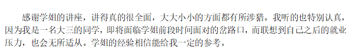 最后是线上答疑的环节,同学们在听完刘海蝶学姐的分享后都进行了积极的提问,学姐也是根据自己的经验耐心地答疑解惑,参加这次活动的除了即将面临就业的大三、大四的同学,还有许多大一新生,充分说明了大家对就业问题的重视。