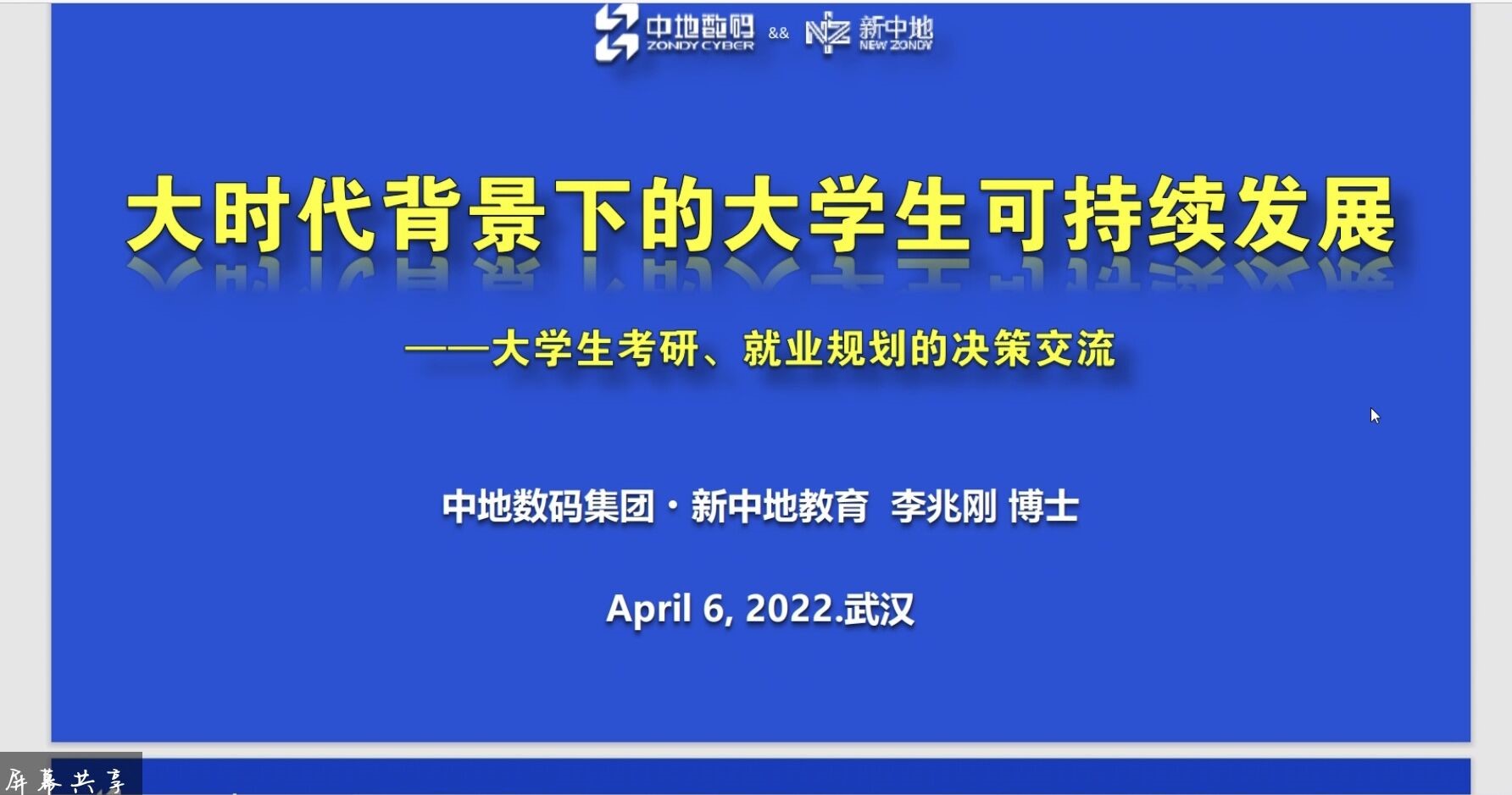 就业指导中心主办,讲座邀请到了中地数码集团•新中地 教育专家李兆刚博士来为大家分享经验,讲座主题为“大时代背景下大学生的可持续性发展”。鉴于当今时代背景,针对性的对考研、就业规划进行了决策交流。旨在引导大学生适应社会发展,提供给学生更加宽广的平台。