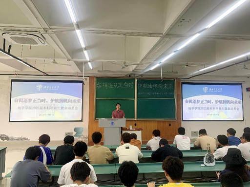 团委书记、就业工作负责人杨都强老师主持,2025届全体本科生参加。