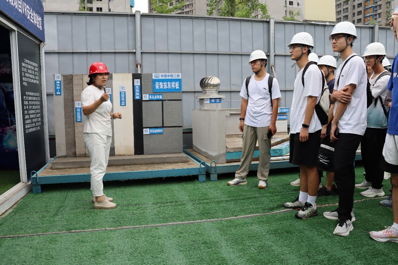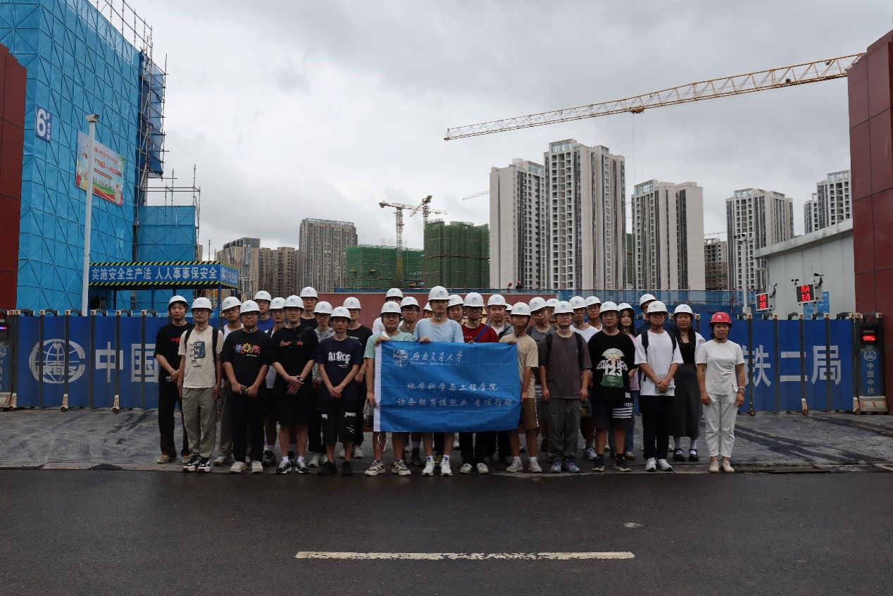师生乘车前往中铁二局金牛区大北区二组团二标段项目部,由西南交通大学2019届校友、项目部技术人员何老师带领师生参观施工现场。