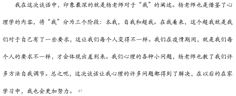 第二部分,杨老师具体从心理学角度阐述了应对不确定性的方法。一是要做好心理的自我身份准备,即随着个人成长我们的社会身份转变的准备;二是要做好学习环境改变准备。在这个要点里杨老师重点阐述了“三个我”——本我、自我、超我,使同学们感触良多。三是关于情绪和焦虑的调节的方法:ABC理论(合理情绪疗法)。