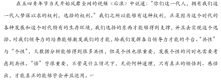 第一部分,杨老师强调了开展生涯规划的意义。在现在这个时代,人们拥有更多选择的权力,而生涯规划就是我们对生命走向的选择。做好生涯规划,对于人生的发展十分重要。作为18级的学生骨干,同学们本身具有领导力的效应。如何培养出具有领导力的学生干部,发挥出自身的领导力才能,是我们需要思考的一个问题。