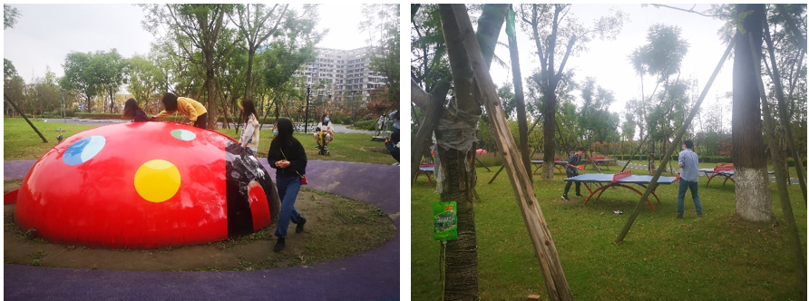 当再次回到地面的时候,大家依然兴致高昂,在杨老师的带领下,我们在地面的公园里游玩了一圈,即使是在秋天,这里依然是绿油油的一片,走在人行道上,感受着微风的吹拂,内心逐渐宁静下来。片刻的宁静终被公园上的娱乐设施所打破,大家的童心被激发,在一起玩得不亦乐乎,杨老师还和同学们一起切磋了一番球技,大家其乐融融,一起度过了一个难得的下午。