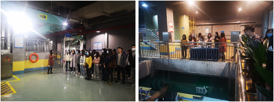 接下来,我们与工作人员进行了对接,由工程师李燕君带领大家进入到我们此次参观的第一站——水环境科普馆。这是一座科技感十足的展厅,运用了复合幻象、内投影、精准投影、镜面屏、雷达触控等科技手段进行展示。工作人员以水资源、水污染和水再生为主线,分生命之源、城市之殇、水之新生、生生不息、节水护水五个环节,认真细致地向大家进行了讲解,在展厅里面还有各种水质状况的实物展示,还可以用显微镜进行观察不同的水样,最后大家一起观看了一部制作精美、内容生动形象的小动画,生动地讲述了污水的回收、处理、再利用的过程。在科普馆里,通过工作人员的讲解,我们认识到了水环境治理及保护的重要性,从理论上了解了污水处理的工艺。