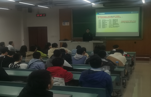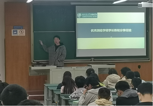 紧接着,陈铨学长向同学们分享自己的考研复习经验。他分别从英语,数学,政治,专业课四个方面展开详细的介绍。并且以测绘专业为例,向同学们提供复习的思路以及自己的复习方法。同学们都从中吸取了不少经验,现场掌声连连。