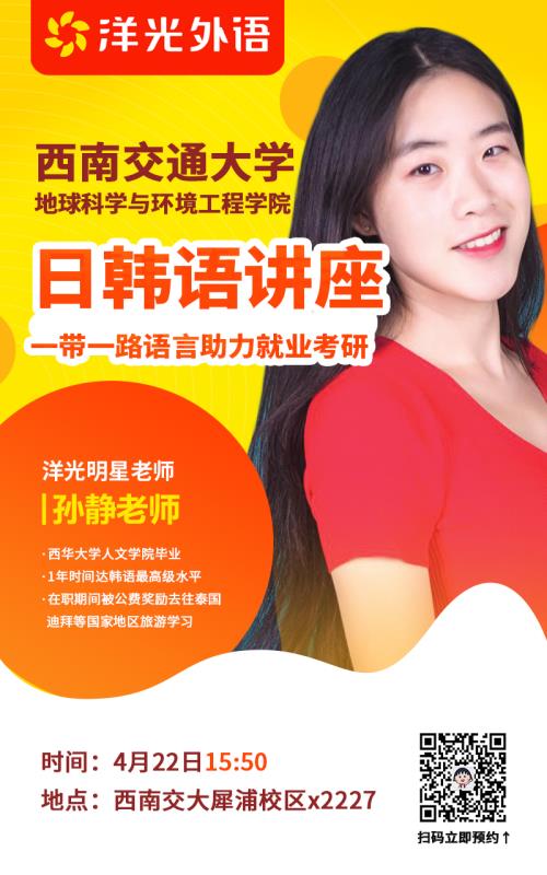主讲人简介:大一开始利用课余时间学习韩语,一年时间达到韩语专业专业生需要花到4年时间才能到达的全球韩语能力水平高级,从大三就开始负担起自己的学费和生活费,毕业1年成为洋光最年轻的中心校长,毕业后被母校多次邀请回去演讲分享她的大学经验