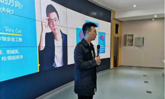 安全科学与工程类大四在读优秀学长蔡伟健同学主讲,讲座主题为“迷茫时如何找到自己的方向?如何将自己的优势最大化?做生活的体验家——港校资深学长的未来选择论”。