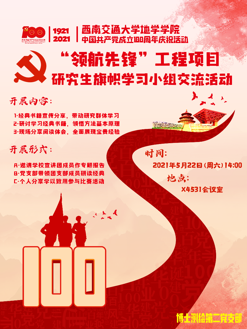 博士测绘第二党支部于4月-5月成功举办“旗帜学习小组”——研究生马克思主义理论学习小组交流活动。