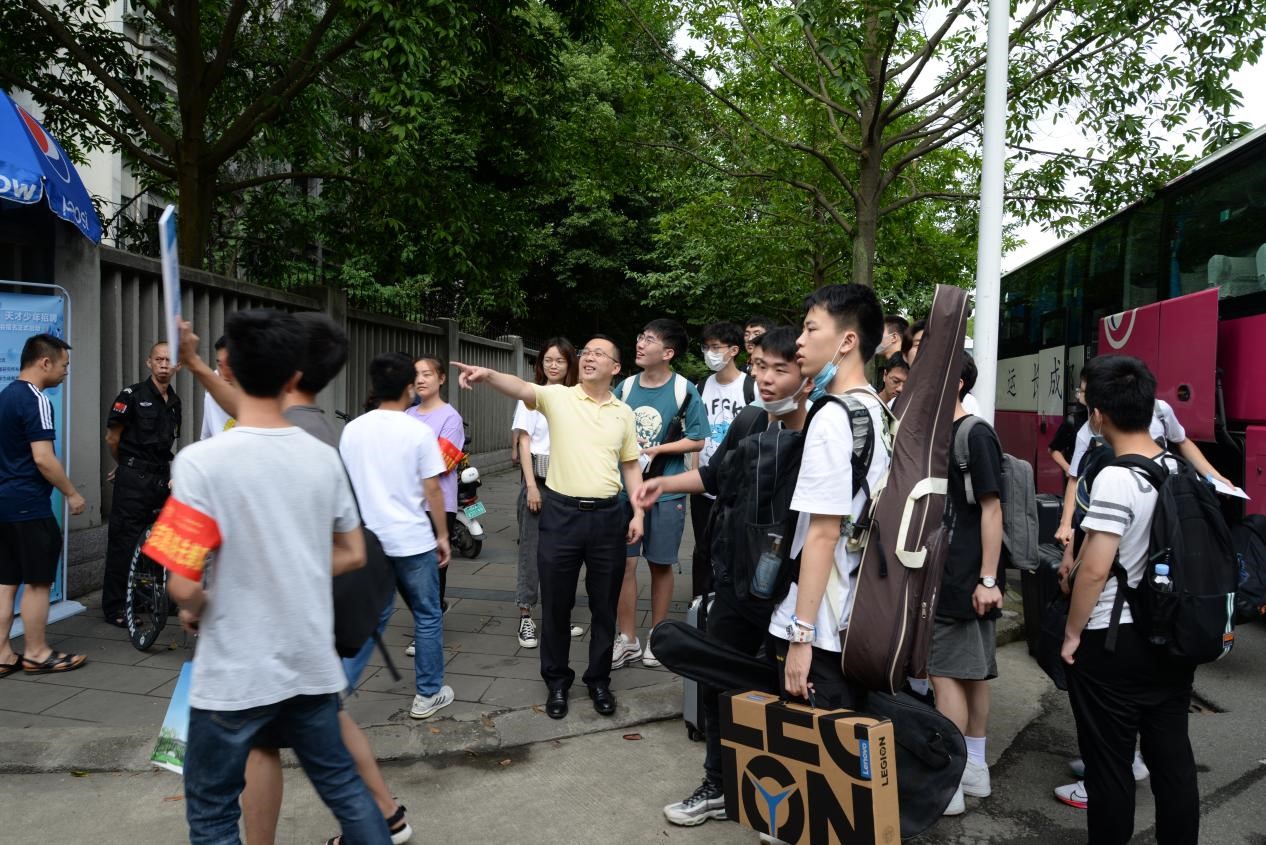全体学生招募30余名志愿者,成立党员志愿服务先锋队,引导峨眉同学到成都后的各项工作,并安排接车的同学,以便搬迁来的同学能顺利找到自己的寝室。