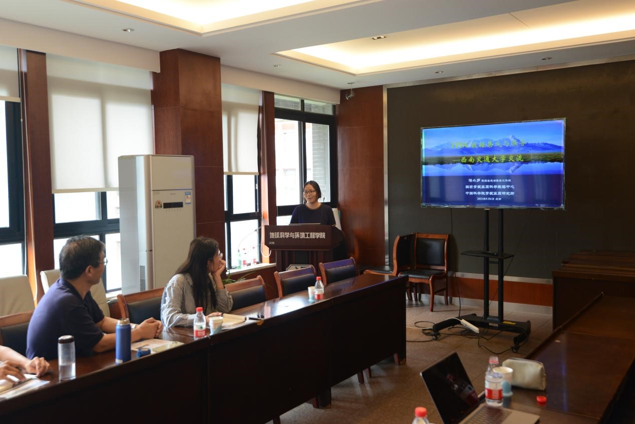 王玉峰副研究员首先介绍了程谦恭教授团队长期以来针对青藏高原高速远程滑坡灾害开展的研究工作,以及获得的主要研究成果;进而结合团队近几年来承担或参与的科技部第二次青藏高原综合科学考察项目、川藏铁路重大专项、国家重点研发计划、国家自然科学基金重点项目、国际合作与交流项目等重大项目,介绍了团队围绕青藏高原高速远程滑坡灾害研究所进行的数据集成、处理、汇交及共享等工作情况。郭学军副主任介绍了国家青藏高原科学数据中心(TDPC)的总体概况、发展历程、应用推广与重大成效。他指出,数据中心以青藏高原及周边地区各类科学数据为主,整合了大气、冰冻圈、地质、地球物理、自然资源等等海量数据资源,开发了在线数据共享与合作、大数据分析、模型应用等功能,实现了青藏高原科学数据、方法、模型与服务的广泛集成。潘小多研究员就TPDC数据集成与服务、共享与使用、开放权限以及科学数据共享的现实意义等方面进行了讲解。