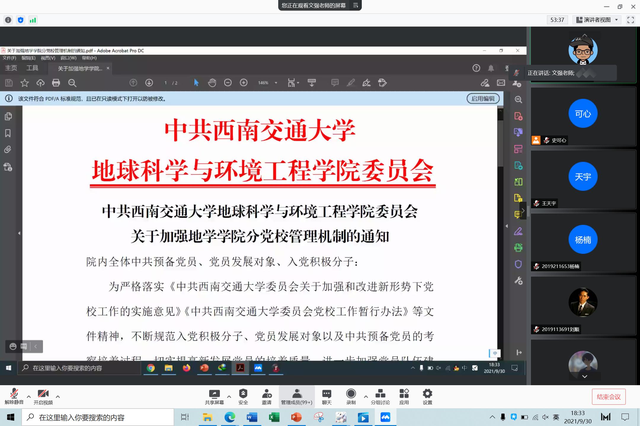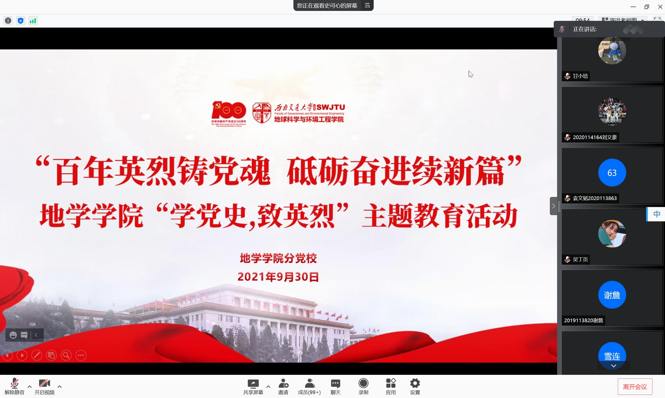 分党校于9月30日下午18:00通过腾讯会议线上开展“百年英烈铸党魂,砥砺奋进续新篇”——“学党史·祭英烈”主题教育活动,本次活动由拉斯维加斯娱乐城