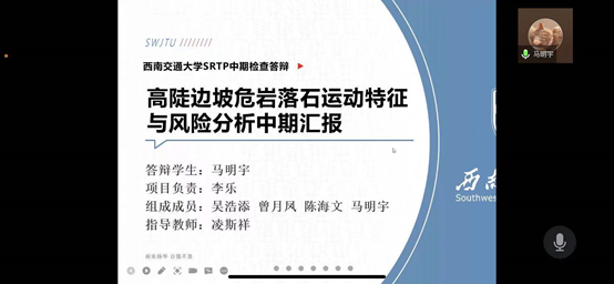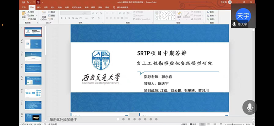 地质、资勘专业2021年SRTP校创、院创项目中期答辩于线上顺利开展。本次答辩主持人为张志厚老师,答辩会议由各项目小组成员和指导老师共同参与。参与答辩的项目组共有14个,包括7个校级项目和7个院级项目。本次答辩旨在了解各项目的实际发展情况,同时对各项目的研究现状和研究半成果进行分析和评审,为项目组进行下一阶段的研究工作提供指导和建议。