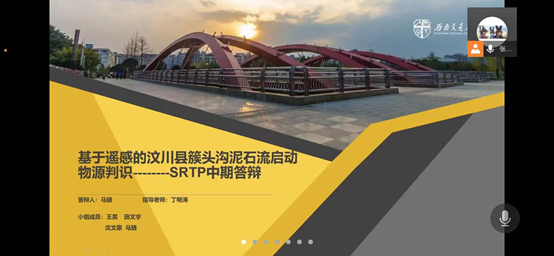 答辩总结:此次项目中期答辩内容主要是对该对汶川县簇头沟进行实地考察和该项目所做的初步成果展示以及之后的项目进展计划。答辩老师对该项目进行了关于其所用DEM数据的分辨率和簇头沟的流域宽度的提问,小组也对其进行了详细的解答