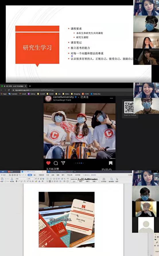 主任Vivian Wang主持,特邀西南交通大学安全工程专业2017级毕业生何玮(现就读于康奈尔大学)、张梓琳(现就读于马里兰大学),西北农林科技大学食品科学与工程专业2018级在读学生邢泽宇(现就读于内布拉斯加林肯大学),中国农业大学农业商务专业2019级在读学生时东利贞(现就读于OSU,统计学双学位在读)、2018级在读学生姜世云(现就读于OSU)5名同学分享了留学美国的心路历程及学习生活感受。