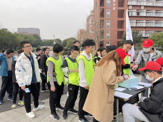 本次活动的路线为【浙园→经校车站到西门→堂吉诃德像→机车博物馆→四教】,途中共设有三个答题点:环保知识竞答、环保图标配对及垃圾分类,均匀分布在整个赛程中,参赛者需要在每个答题点答完相应题目获得该答题点印章方可算有效参与。活动开始前,志愿者们提前一个半小时到达各个活动点位布置现场,准备题目、水等活动物资。活动中在各个答题点之间设有指引点,为参赛人员指引道路。此次活动还设有休息点,供参赛者调整休息,并为参赛者播放环保的影片,使得环保意识更加深入人心。