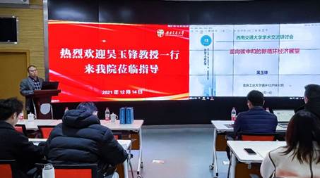 2021年12月14日上午,应“固废资源化”重点专项“城市固废大数据挖掘及全生命周期管控新技术”项目负责人赵锐教授邀请,国家循环经济专家咨询委员会专家委员、国家重点研发计划“固废资源化”重点专项总体专家组成员、北京工业大学循环经济研究院院长吴玉锋教授到西南交通大学开展项目跟踪指导,并做了“面向碳中和的新循环经济科技展望”学术讲座。西南交通大学科学技术发展研究院邓永权副院长,张超科长,项目骨干慎利副教授、彭道平副教授、罗刚副教授、陈德副教授、杨丹博士、俞阳博士,以及项目组30余人参加了本次交流活动。