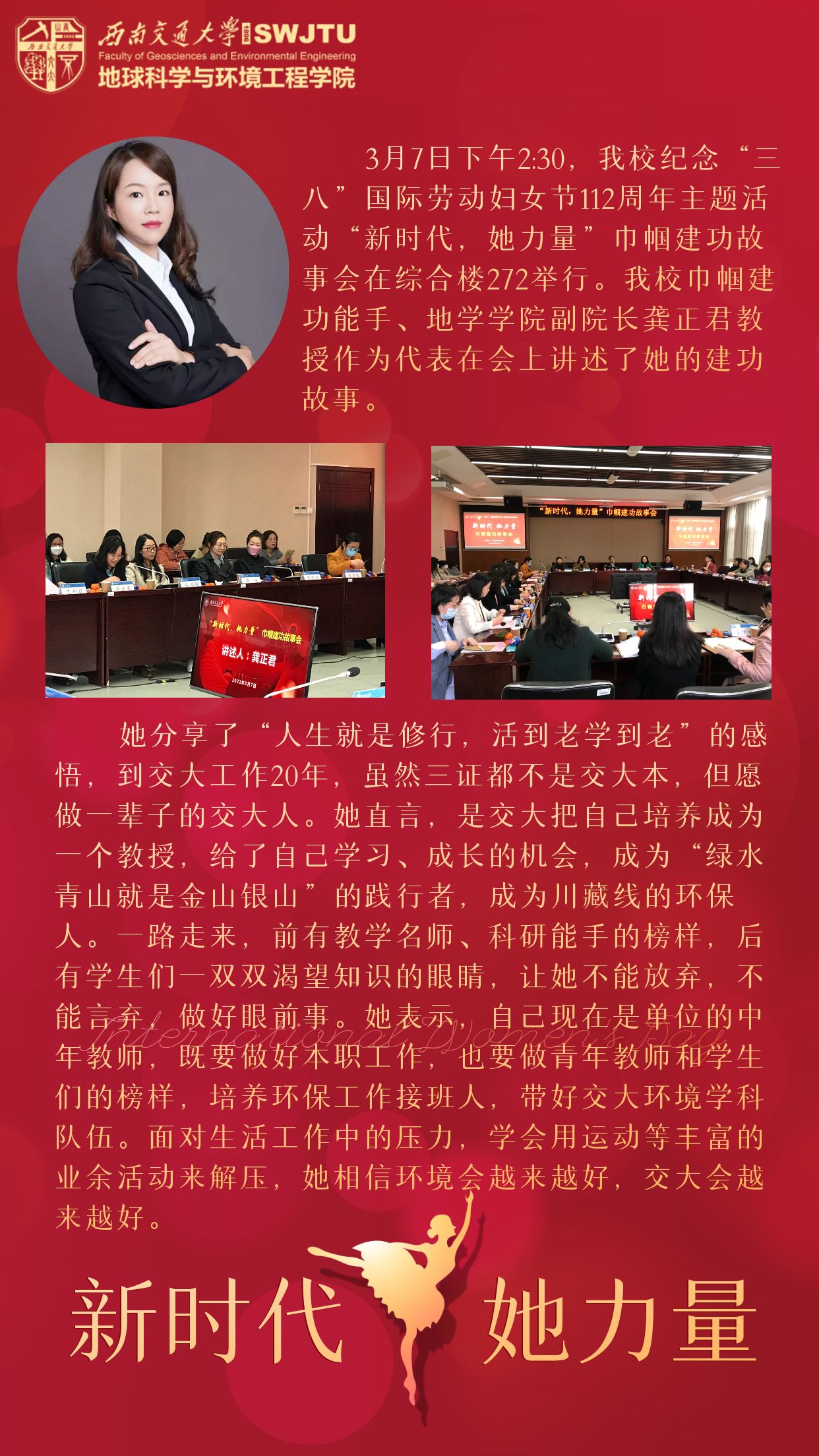 我校巾帼建功能手、拉斯维加斯娱乐城 副院长龚正君教授在纪念“三八”国际劳动妇女节112周年主题活动“新时代,她力量”巾帼建功故事会上作分享交流