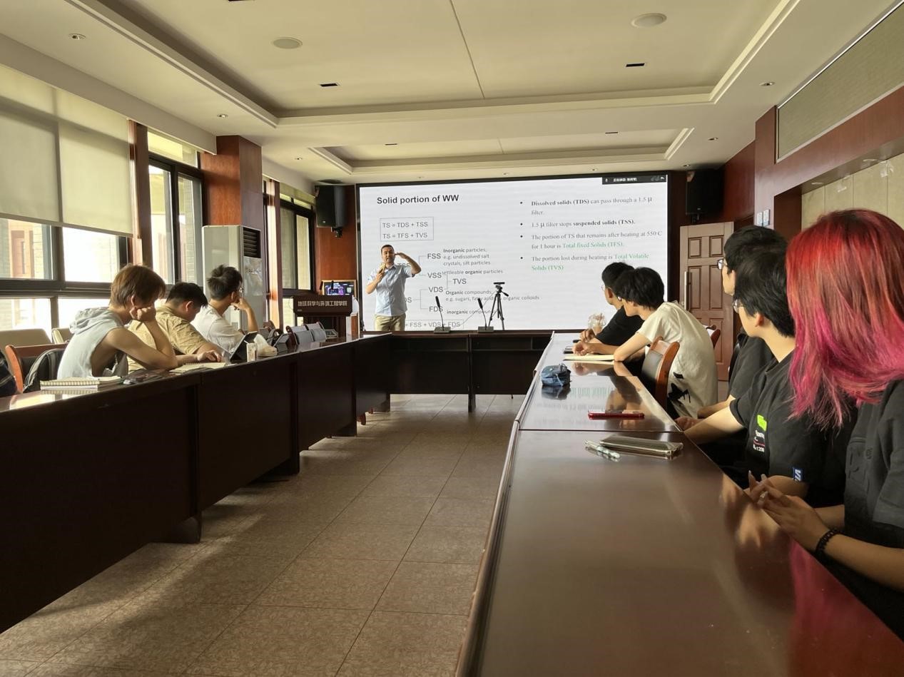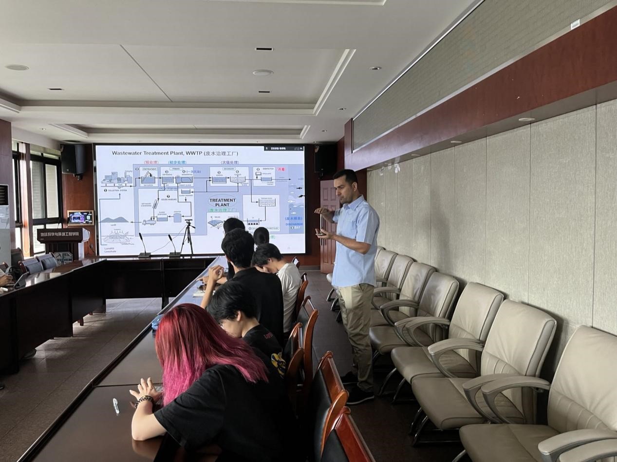 随后,Hassan副教授系统介绍了污水的相关概念及处理方法和技术,在介绍废水治理工厂的内容时,他先让大家根据课件的内容尝试理解整个流程,然后互相讨论,最后再一步步详细讲解废水治理工厂的整个流程。