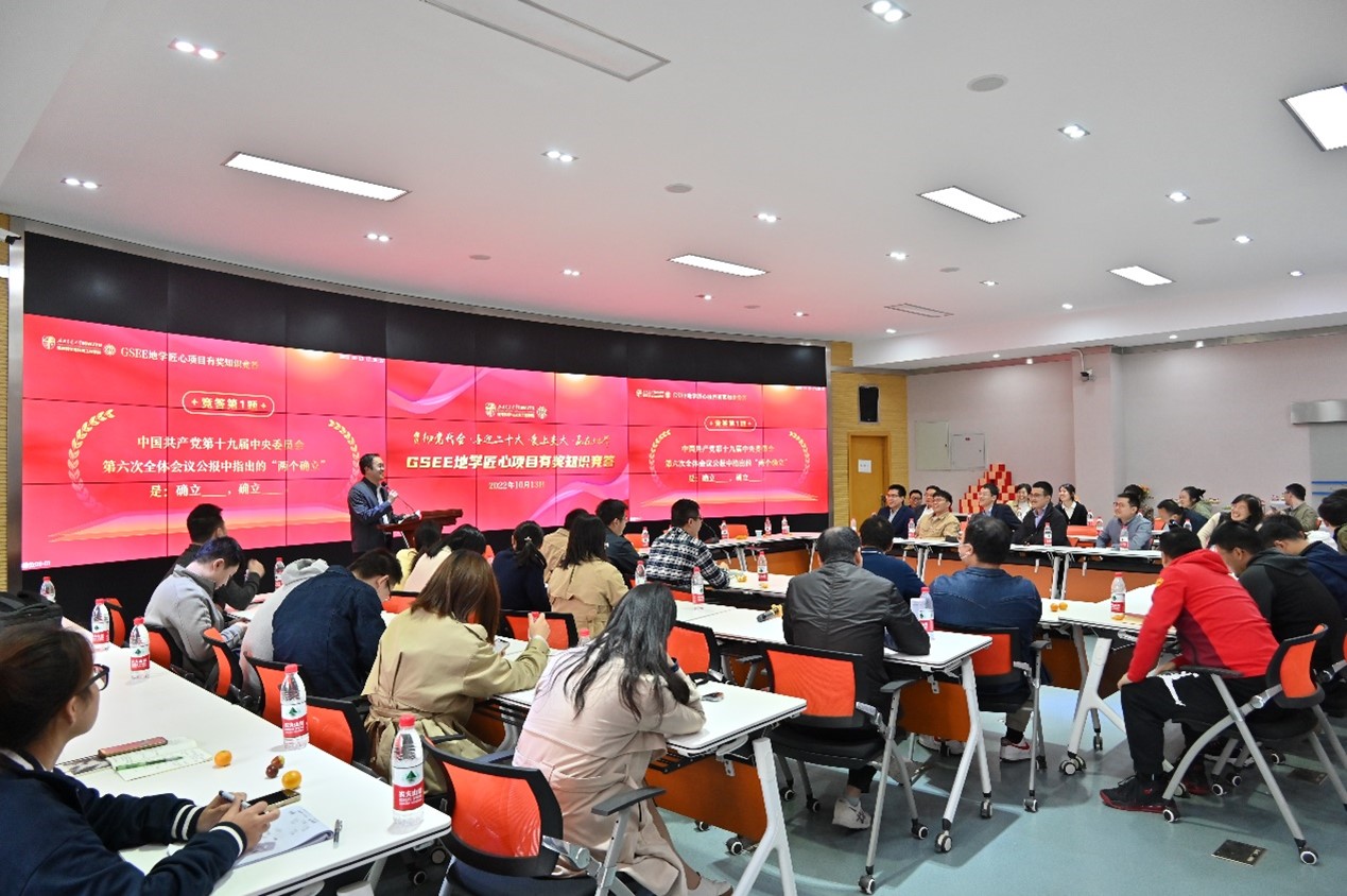 青工委员彭道平副教授主持“贯彻党代会·喜迎二十大·爱上交大·赢在地学——GSEE地学匠心项目”有奖知识竞答活动。他围绕党的重要理论和党史、学校第十五次党代会精神、校史院史等一系列问题进行提问,到场青年教师积极踊跃抢答,氛围热烈。