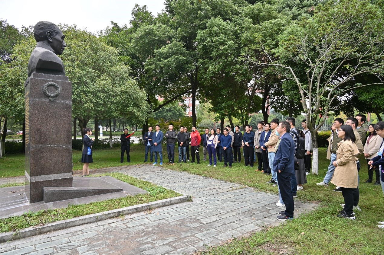 座谈会正式开始前,参会人员在学校南大门前集合,由西南交通大学校园大使团成员张禹淇带领老师们走中轴线,重温学校126年办学历程,领略大师风采。从南大门到“竢实扬华”墙再到四号教学楼,从标志性建筑到杰出人物塑像,从学校历史发展到精神内核培育,讲述了 “竢实扬华,自强不息”的交大精神、“精勤求学,敦笃励志,果毅力行,忠恕任事”的交大校训、“严谨治学,严格要求”的优秀传统,展现出学校教师风清气正、一心为国的高尚品质,对在场青年教师产生积极深远的教育意义。