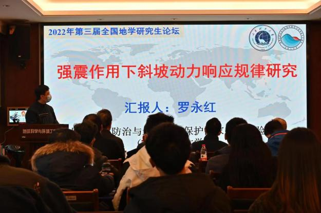 会上首先邀请罗永红教授和国家杰青项目获得者张茹教授分别作了学术报告,为本次分论坛揭开了重要的序幕,同时鼓励广大青年研究生在新时代里充分利用学科交叉融合带来的机遇,运用前沿先进的科研手段,做出更多创新性的成果。本次研究生分论坛围绕地质灾害与防治工程、深部岩体与水热演化、地球物理与智能勘探、构造地质与区域稳定以及战略资源与低碳能源五个主题开展了学术交流与研讨,共有42场学术报告,其中博士研究生13人,硕士研究生26人,同时还吸引3名优秀本科生在会上做了学术报告。