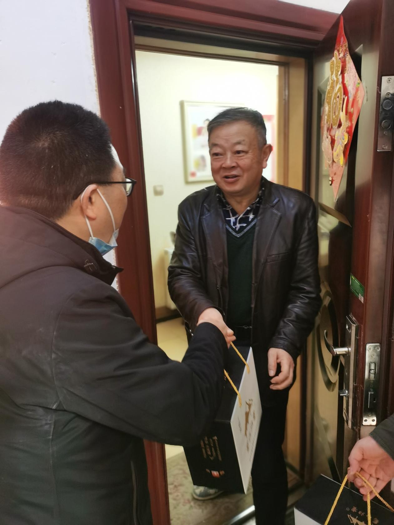 慰问的前一天各系秘书先给老同志们打去了关心的电话,拉家常询问健康的同时,也了解清楚老同志们目前的居住地址。1月12日上午,慰问小组成员早早地就来到了学校居住区,为了老同志们的身体着想,减少聚集,由慰问小组登门为老同志送去祝福;对于部分不方便的老同志采取“零接触”式送祝福到门口,然后通过电话表达拉斯维加斯娱乐城