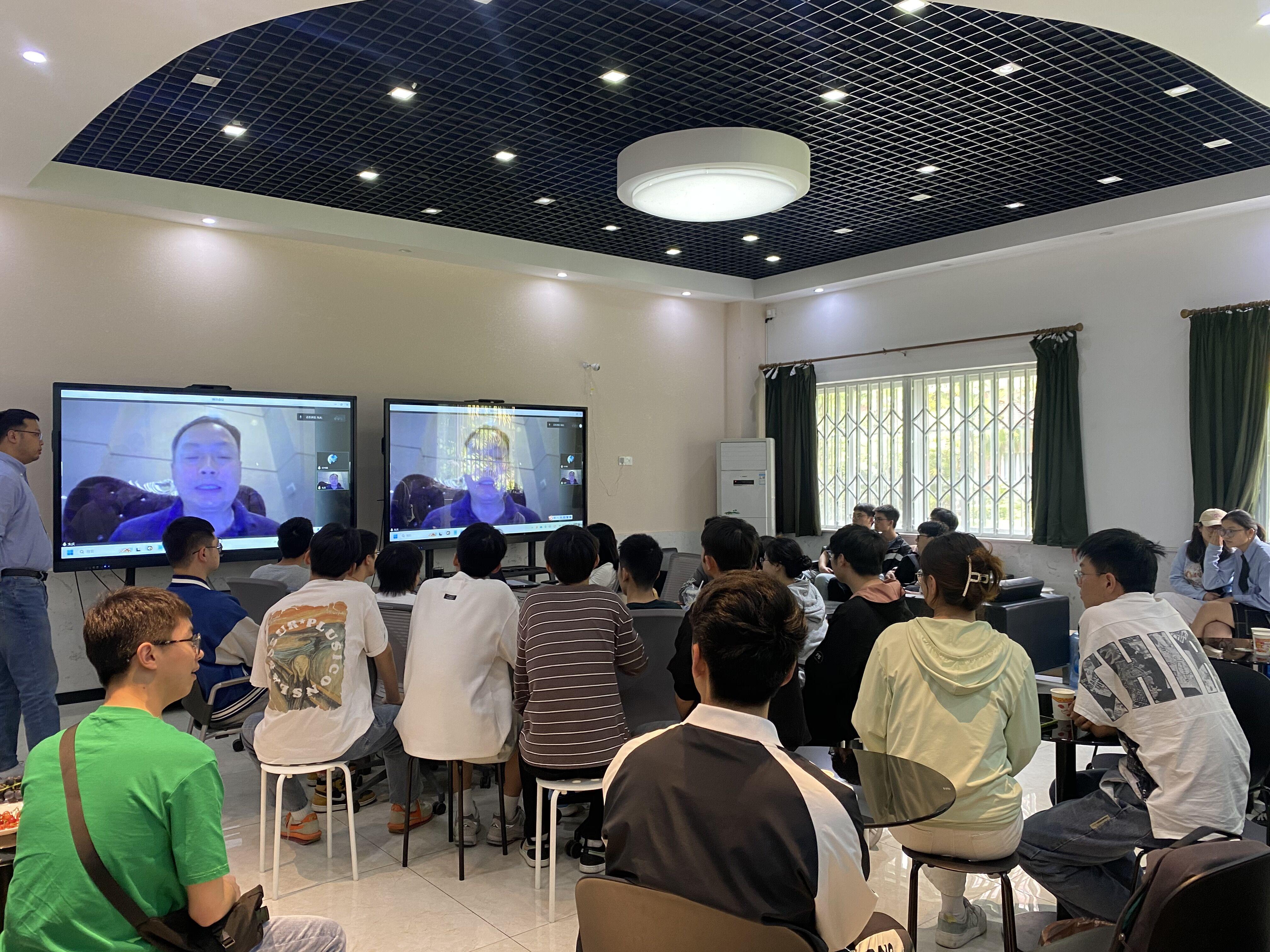 座谈会共分为三个环节:首先,朱庆老师作线上专题分享;第二环节师生交流;最后,胡翰教授作总结发言。