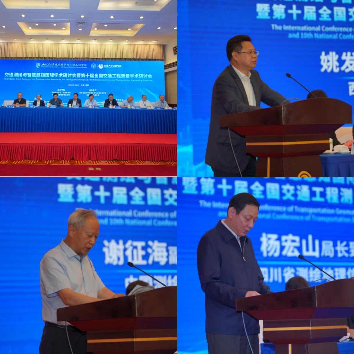院长刘国祥教授主持,西南交通大学姚发明副校长、中国测绘学会工程测量分会副主任委员兼秘书长、重庆市勘测院谢征海副院长,四川省测绘地理信息局杨宏山局长先后发表了致词。他们一致希望此次会议能为交通智能化测绘与智慧感知理论创新与技术发展献计献策,为推动交通强国战略实施、交通测绘高质量发展贡献智慧。
