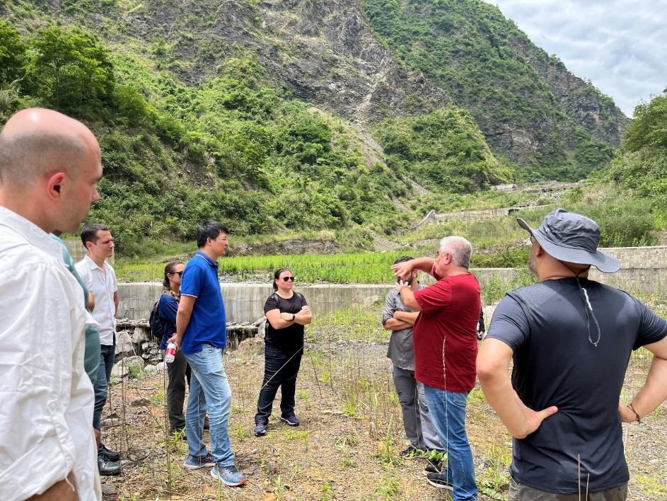 6月9日,丁明涛教授团队带领外方团队参观了岷江上游的地质环境和人文环境。在由衷赞叹岷江上游绝美的自然风光和壮观的地质环境的同时,也对岷江上游各种人文和自然地理现状充满兴趣。丁明涛教授在现场为外方地理学者讲解了岷江上游的水文条件、地质环境、自然灾害、聚落分布等基本情况,并在现场就中-巴-古三国的地质环境的异同与外方学者开展热烈交流。