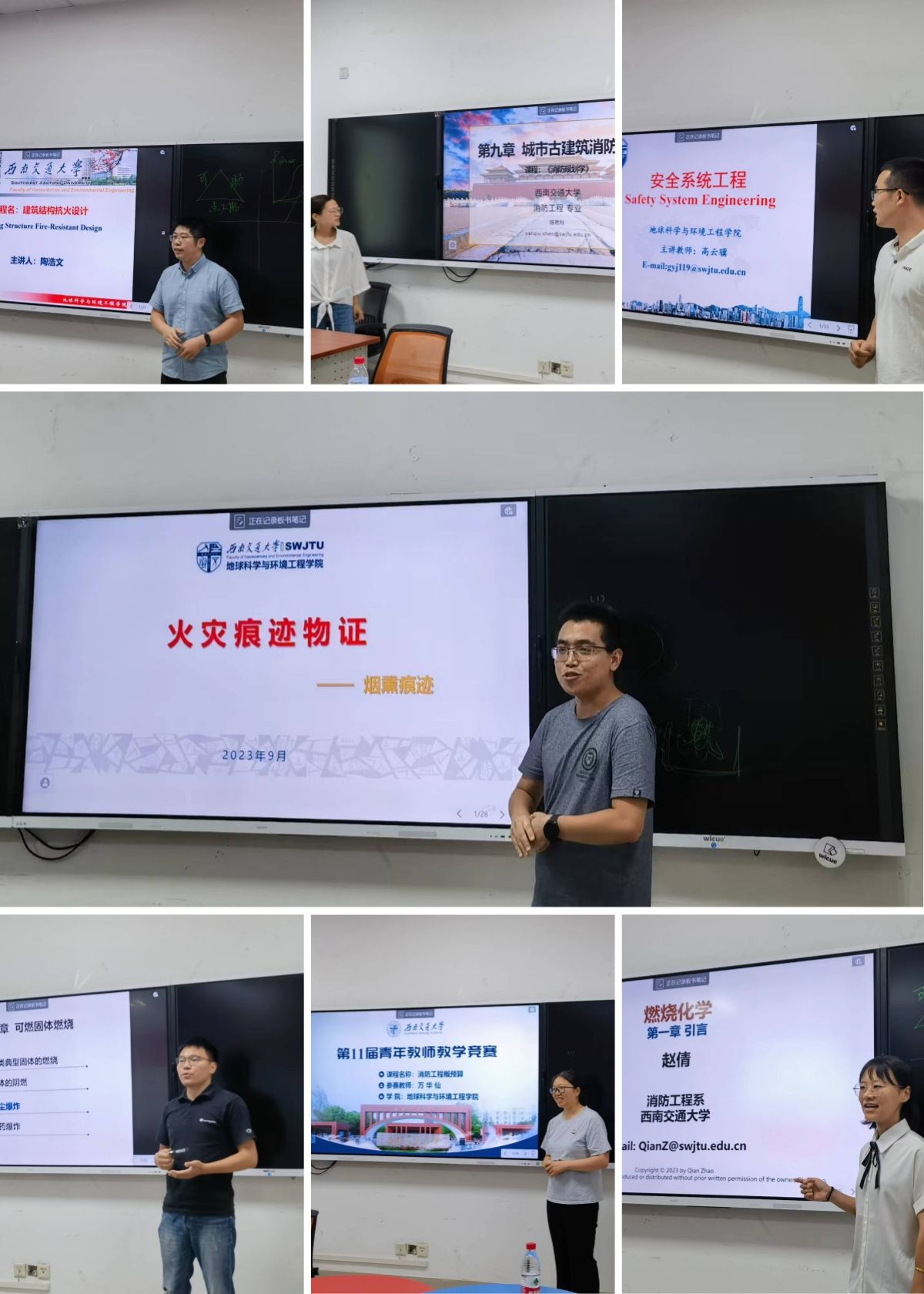 优秀青年教师参加学校第十一届青年教师教学竞赛, 2023年9月20日在X4137举行2023年青年教师教学竞赛消防学科组预赛,我院副院长、消防工程系主任张玉春、教工消防党支部书记、消防工程系副主任李涛、评委教师代表赵乘寿以及青年教师选手参加,比赛由消防工程系副主任宋广瑞主持。消防工程系积极组织,认真准备,本次预赛分为“赛道A”和“赛代B”两个赛道,“赛道A”消防工程系参加5人,“赛道B”消防工程系参加2人。