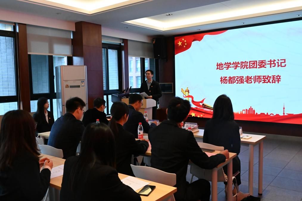 团委书记杨都强致辞。杨都强强调了研究生会的示范引领作用以及团结广大研究生同学的桥梁作用,并着重表示新时代青年应当树立起目标意识、问题意识、结果意识,不负美好时代,绘就青春画卷。