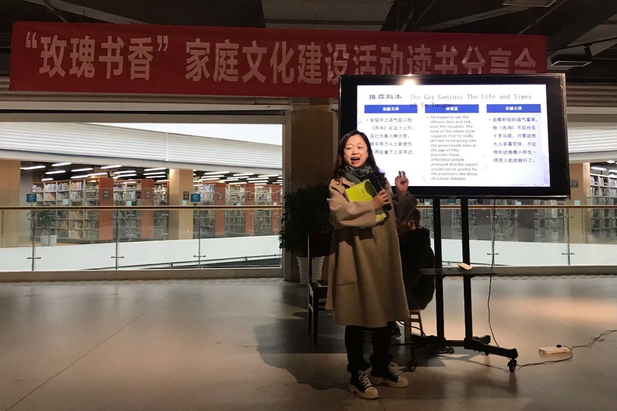 由刘颖、张胜利、王绍笳、蔡红波4位老师组队参加了本次读书分享会,她们推荐的书籍是林语堂先生的《苏东坡传》。