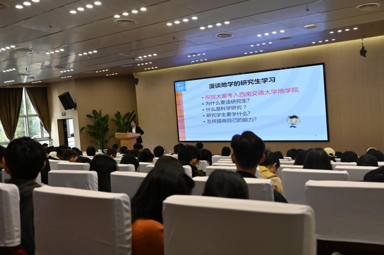 研究生会承办的镜湖半月谈活动在犀浦校区图书馆2号报告厅顺利举行,活动邀请了国家级特聘人才、我院名誉院长李志林教授作为主讲嘉宾,为大家作题为《漫谈研究生学习》的学术专题讲座。地学研会指导老师、院团委副书记崔宇龙,23级研究生辅导员何杨,22级研究生辅导员郑非,以及相关专业师生共计250余人参与了本次讲座。讲座由辅导员郑非主持。