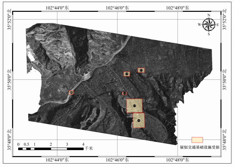 图1 甘肃省积石山县大河家镇震后公路交通基础设施灾毁总分布示意图 |